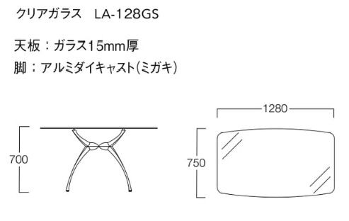 リンクテーブルLAー128GS クリアガラス1280×750×H700
