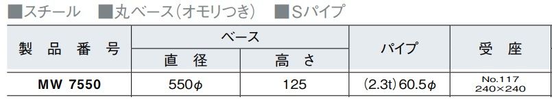 MW7550 テーブル脚 F30粉体塗装 適合天板900丸・800角