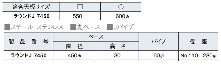 ラウンドJ 7450 ステンレス(メッキパイプ) 適合天板600丸・550角