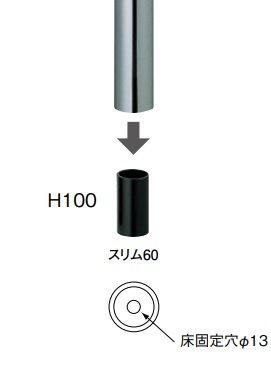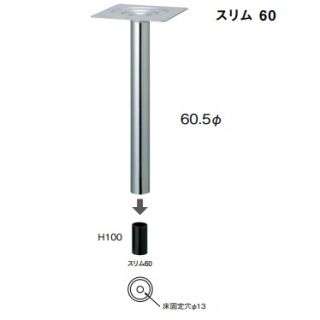 スリム60 インロー式 床固定式テーブル脚粉塗装(6色より選択)高さ700まで