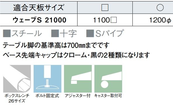 ウエーブS21000 141粉体塗装 適応天板 1100角 1200φ